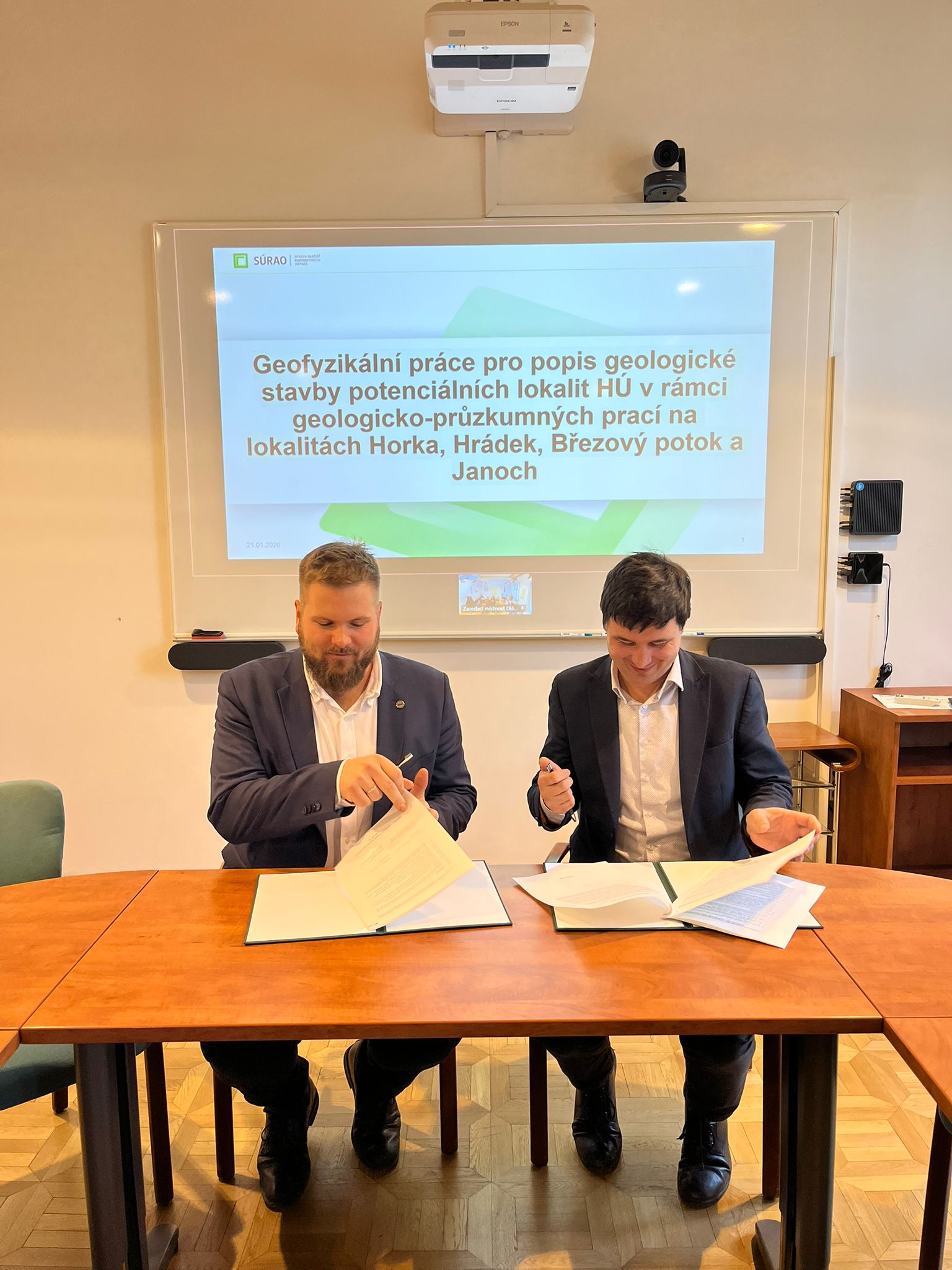 Správa úložišť radioaktivních odpadů (SÚRAO) podepsala smlouvu se společností INSET s.r.o. na geofyzikální průzkum čtyř lokalit zkoumaných kvůli možnému budoucímu umístění hlubinného úložiště. Práce poběží několik let.